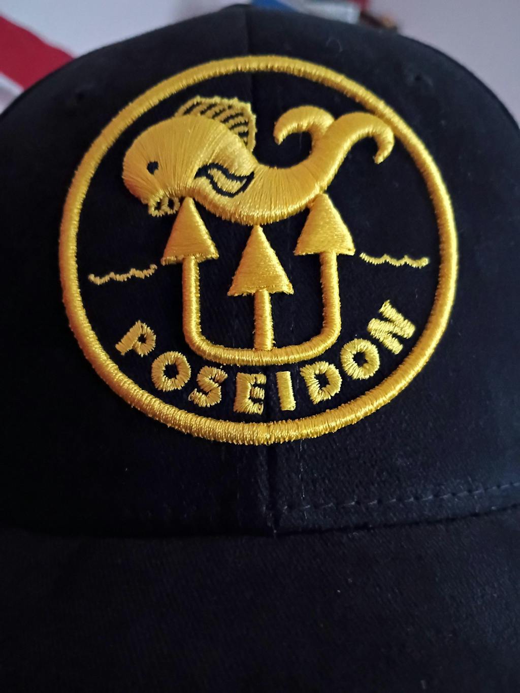 This is the Poseidon All Good Cap Black with Embroidered Fish Logo Hat